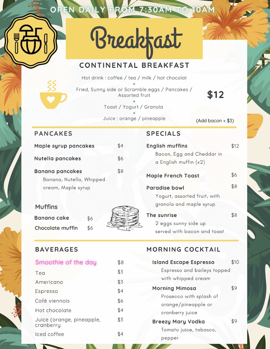 With a charming atmosphere and an inviting outdoor seating area, Cocoplum Bistro offers both an unforgettable dining experience and picturesque beach views. Don’t miss the refreshing mojito red berries or the incredible Bahama Mama drinks!